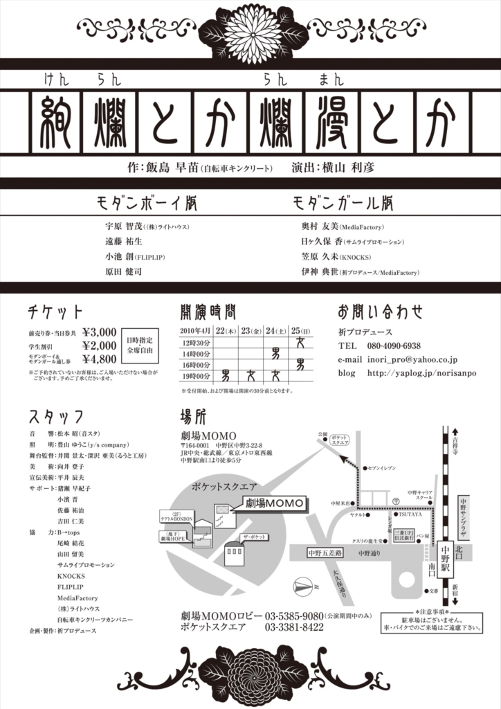 舞台フライヤー。あらゆるところで演じられている名作舞台。