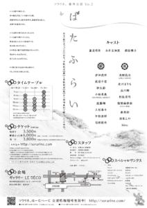 ソラリネのユメ舞台のフライヤー制作。デザインの他に写真撮影も担当。