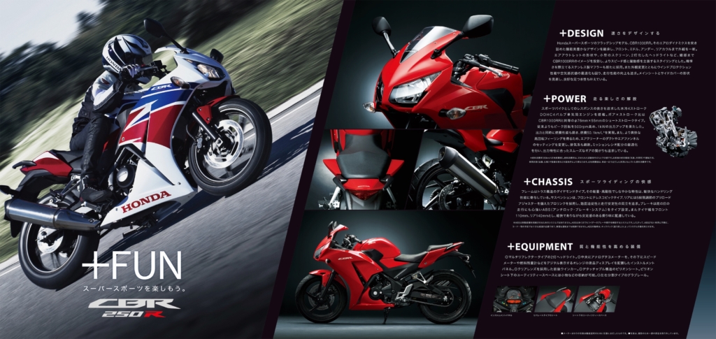 最初は、今まではHondaを代表するスポーティな本格的走りが売りのシリーズだが今回のコンセプトは単気筒なのでスポーツバイクながらも街乗りの快適さを売りにしているとのことだったので都会的ロングツーリングを意識しながら様々なシチュエーションがつながる世界観で表現。